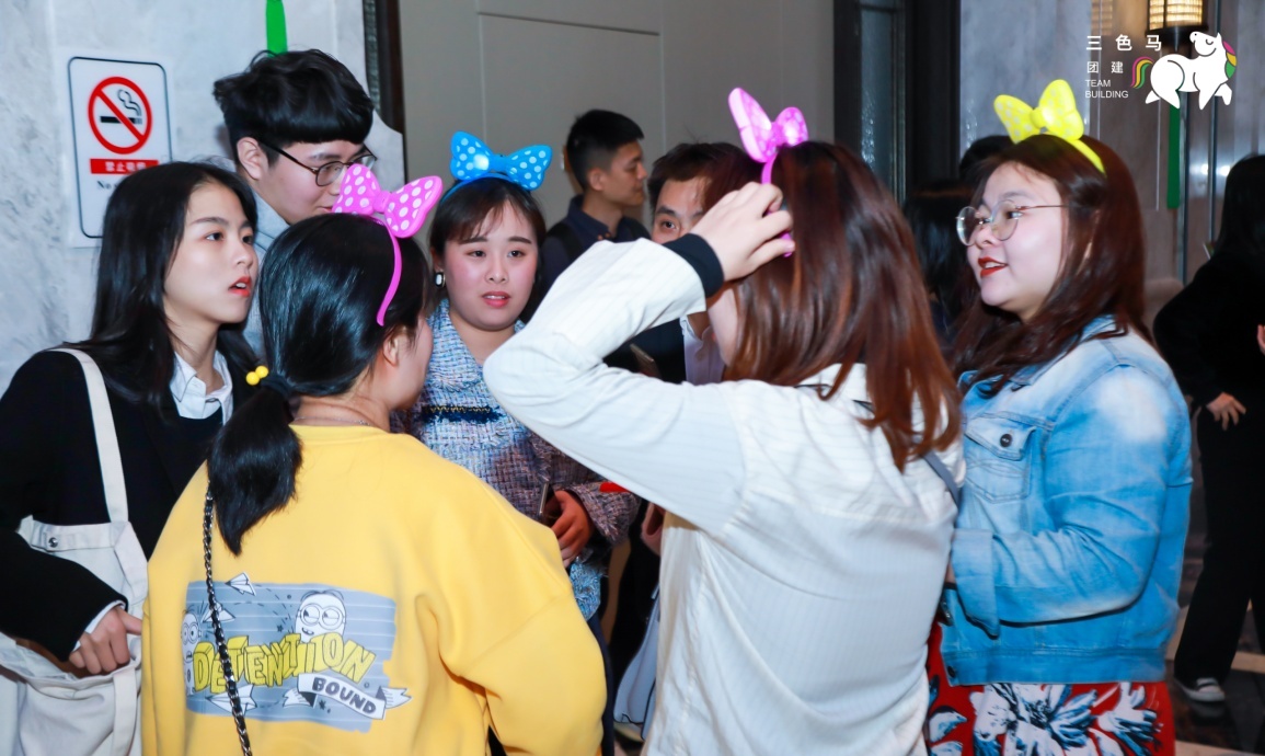 签到完毕后,小伙伴们为晚会装扮~