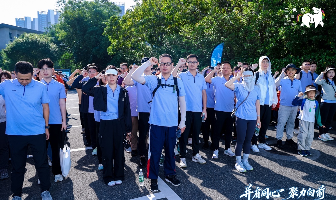 【宣誓热身】集体进行廉洁宣誓后,进行分组热身,为徒步做准备~
