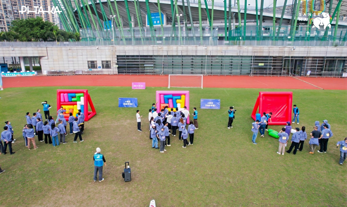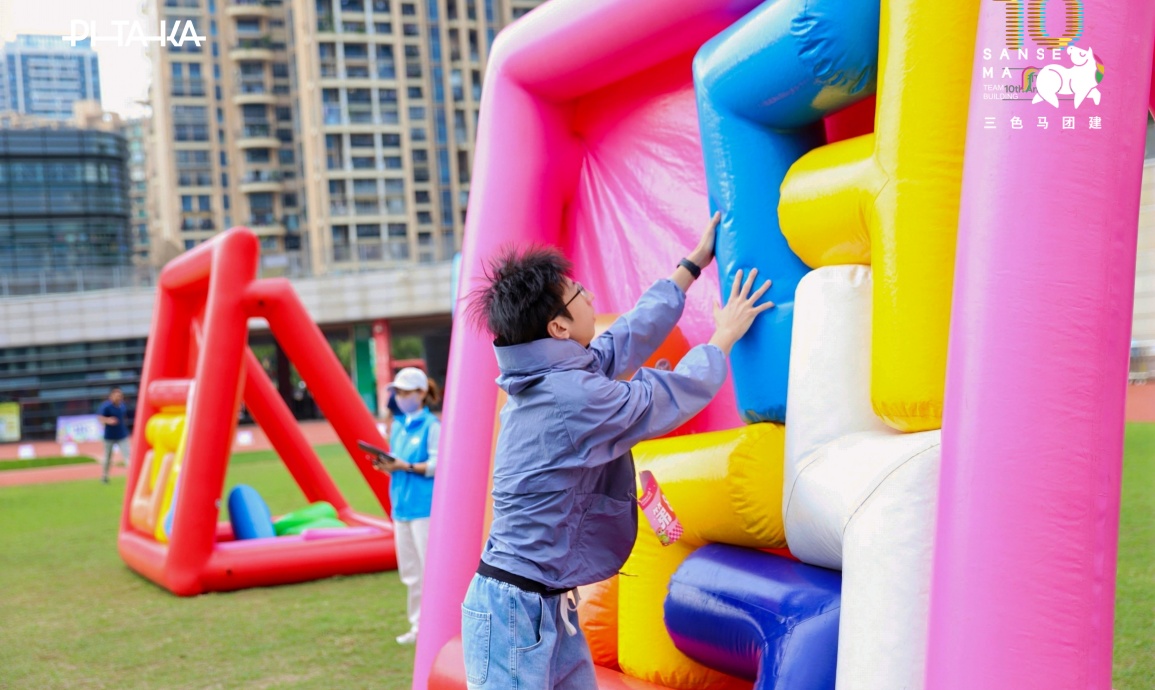 【项目PK·创新争锋】15名队员组队接力,快速拼接散落的充气方块,精准配合、争分夺秒,用时最短的队伍斩获高分,尽显团队协作力!