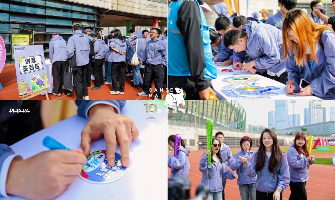 【创意签到&队伍准备】零壹创新科技的小伙伴们抵达球场!解锁趣味摸高签到,领取队伍号码牌、装饰脸贴纸与挥手棒,在拍照打卡区定格美好瞬间,各队在大本营积极备战,氛围感拉满~