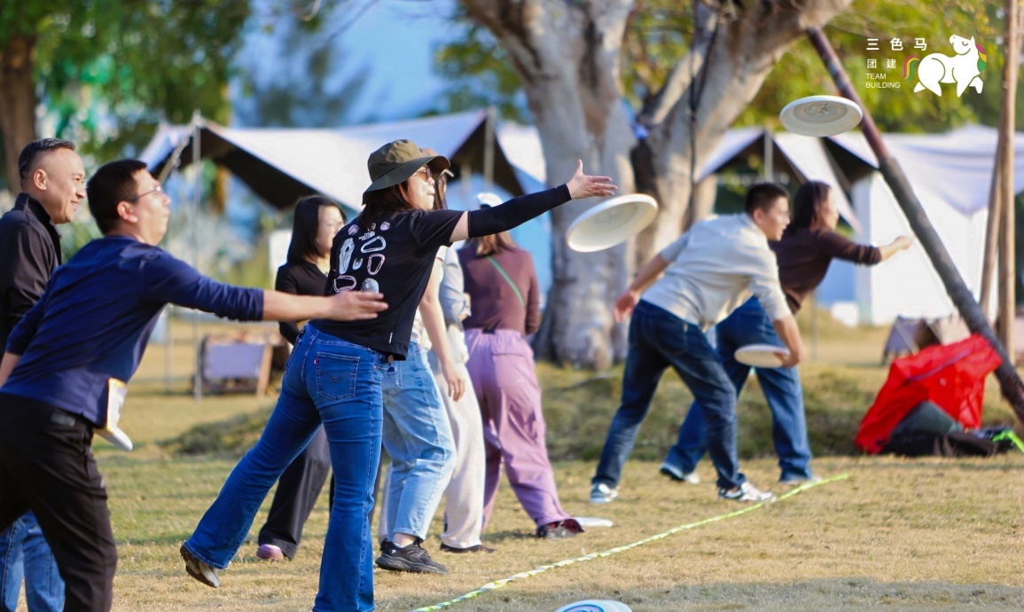 【飞盘主题团建】小伙伴们补充能量后,前往海露营沙滩营地,开启飞盘主题团建~