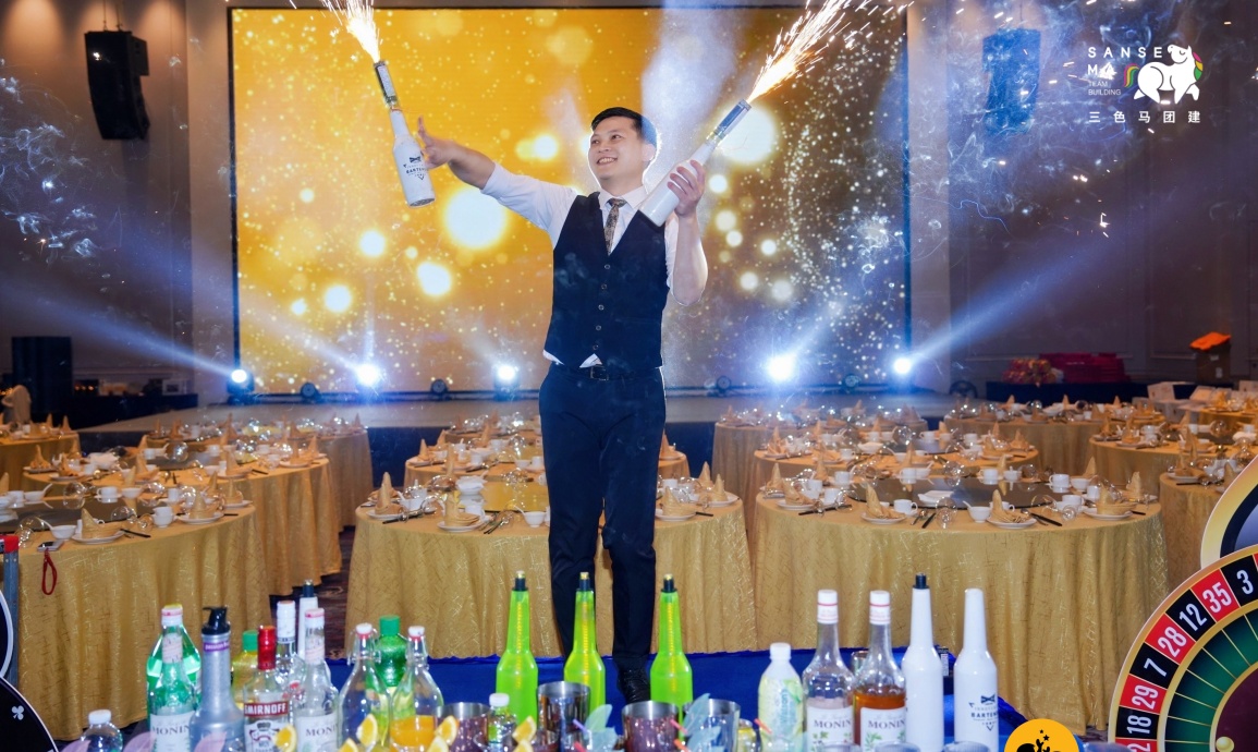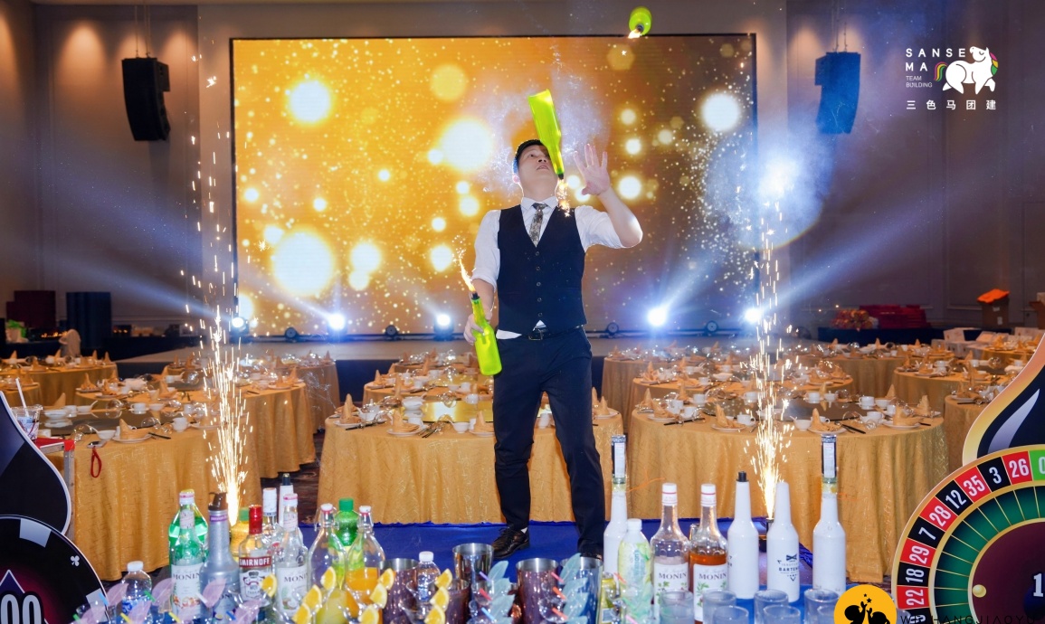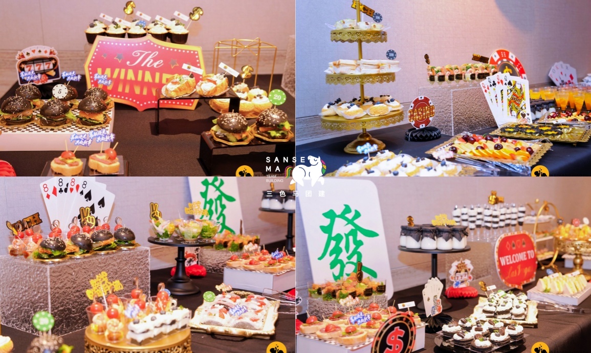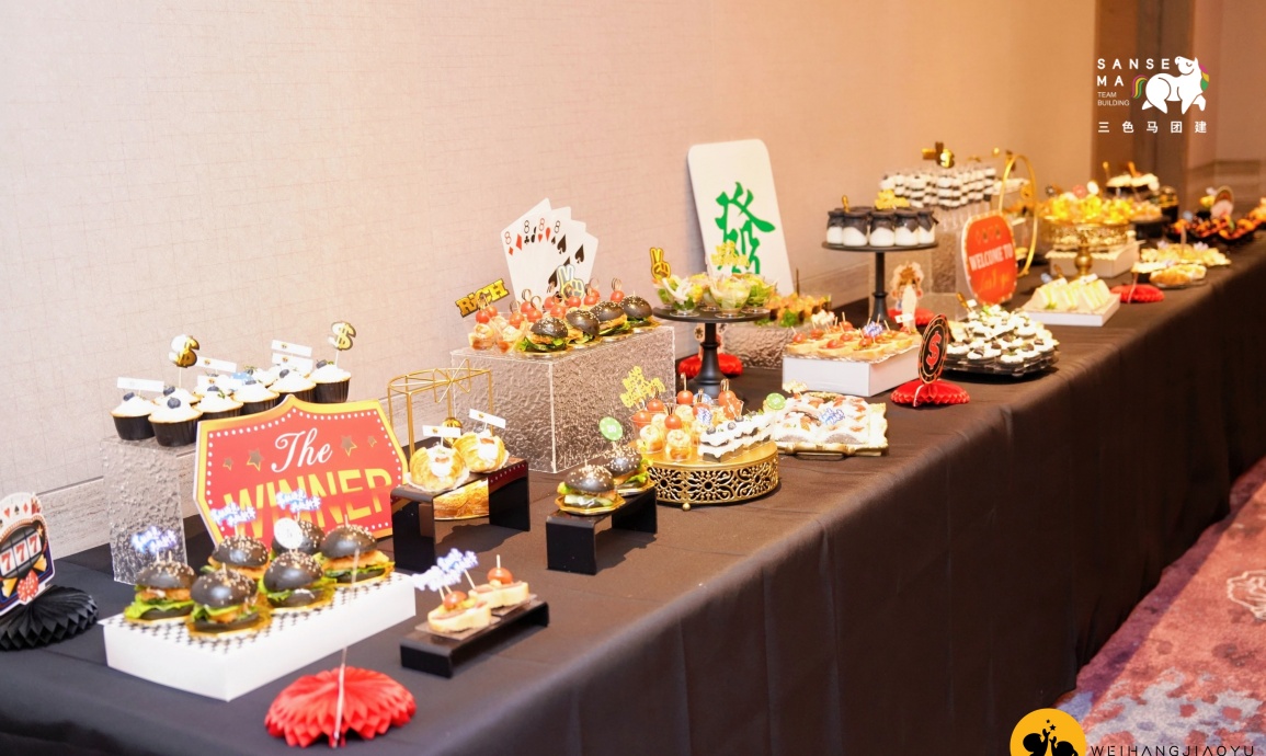【活动布场】三色马团队提前精心布置,将皇冠酒店宴会厅打造成沉浸式拉斯维加斯赛场,赌场竞技区、能量补给区、互动体验区、晚宴区层层递进,灯光与装饰尽显奢华氛围,静待180名伙伴赴约~