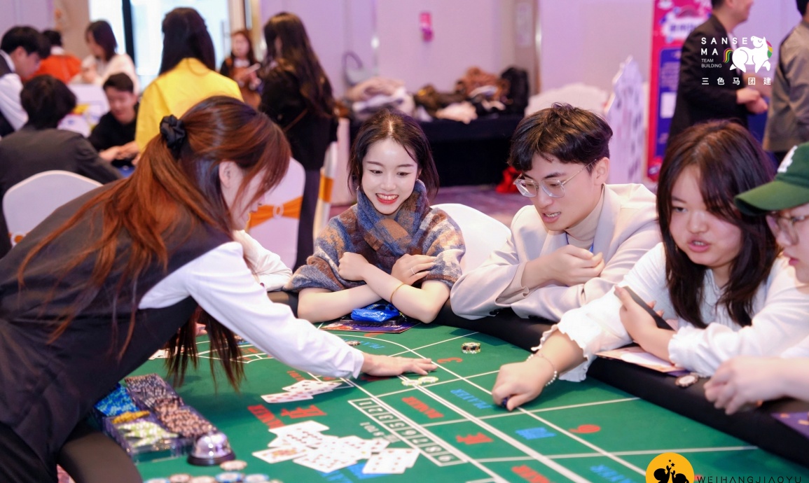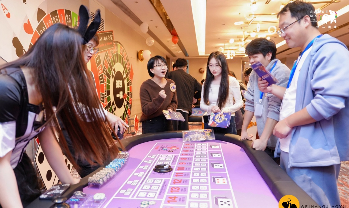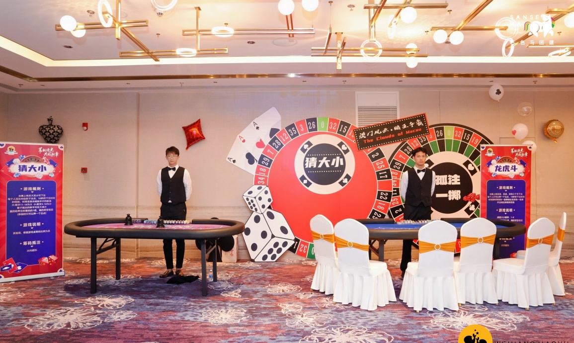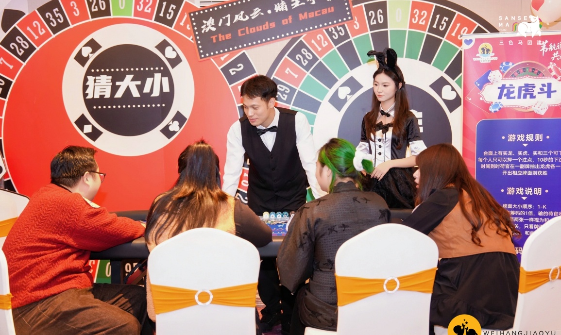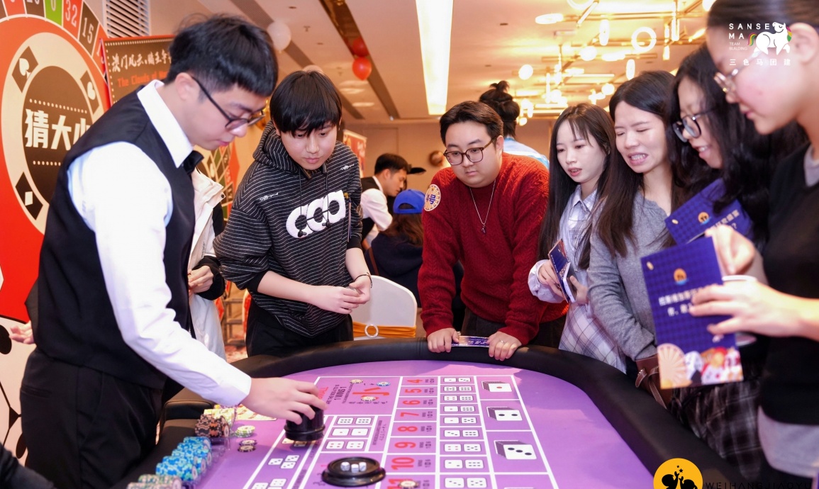 【拉斯维加斯 + 嘉年华体验】赛场火力全开!猜大小、百乐门、德州扑克、龙虎斗、美国转盘等经典赌场项目轮番上阵,飞镖、叠叠乐、幸运掷骰子、雀神争霸趣味加码,大家凭借技巧与运气赚取筹码,现场欢呼声、喝彩声不断~