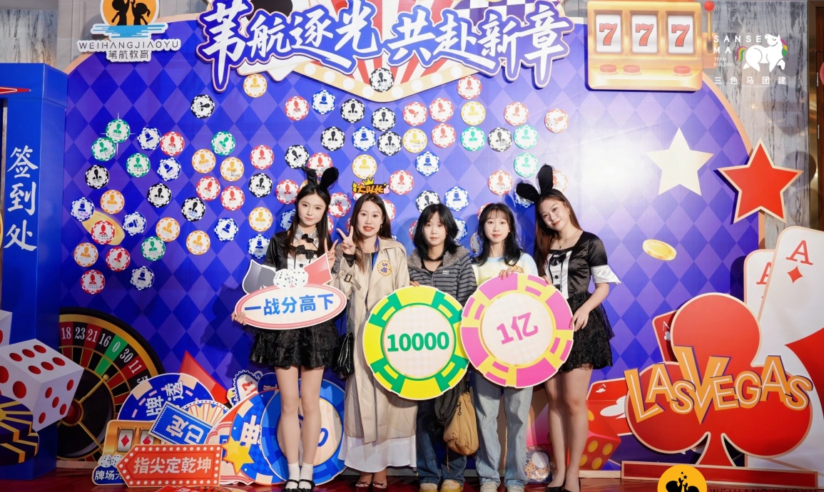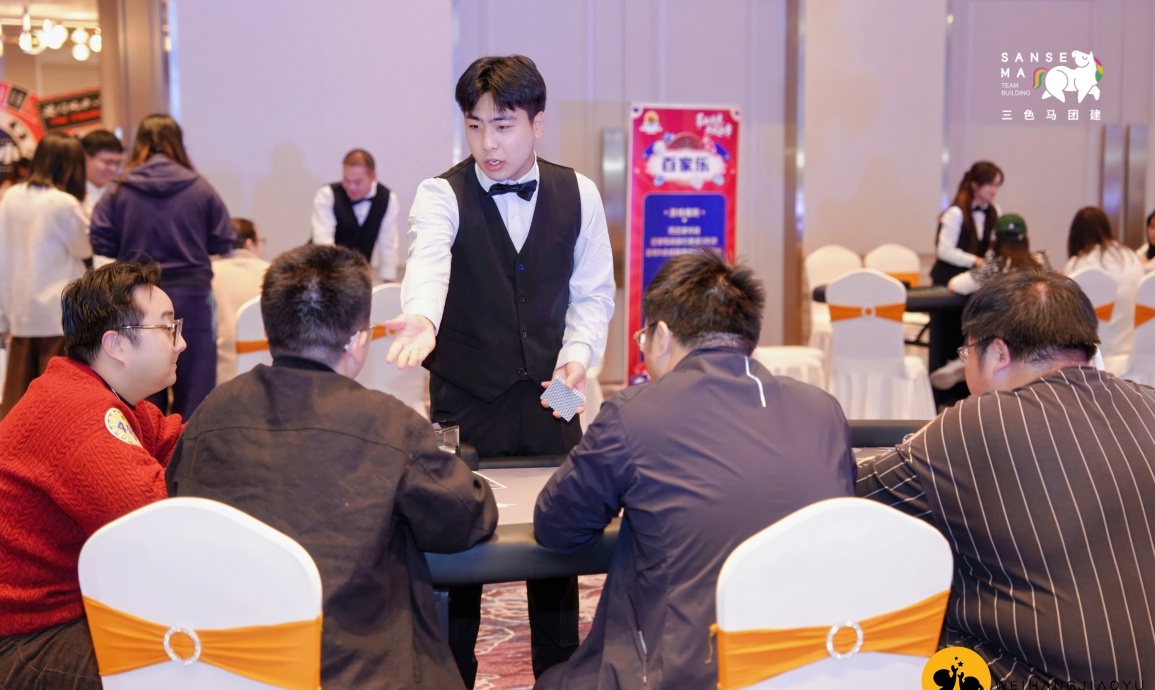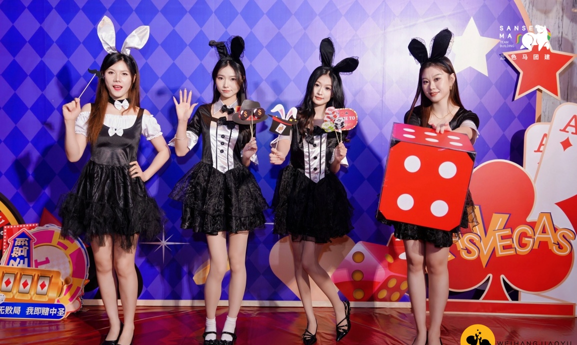 【活动开场】主持人登台宣布活动规则,详细讲解竞技玩法与筹码兑换机制,各队伍有序领取物资,全员斗志昂扬,拉斯维加斯主题狂欢正式拉开帷幕!