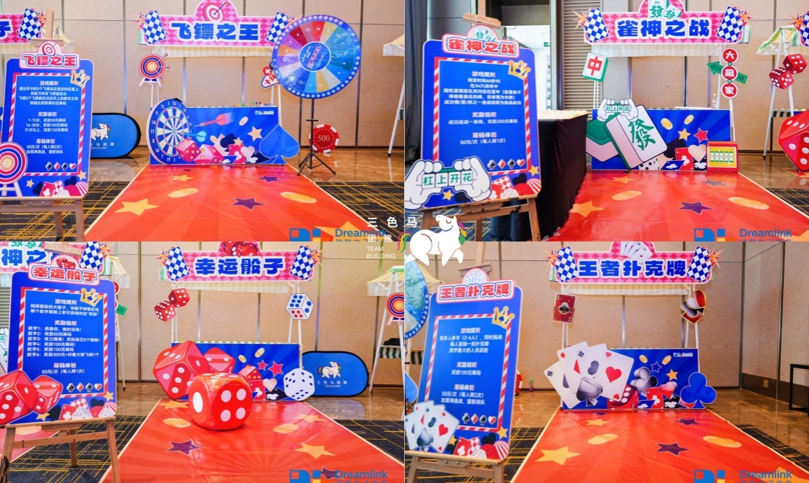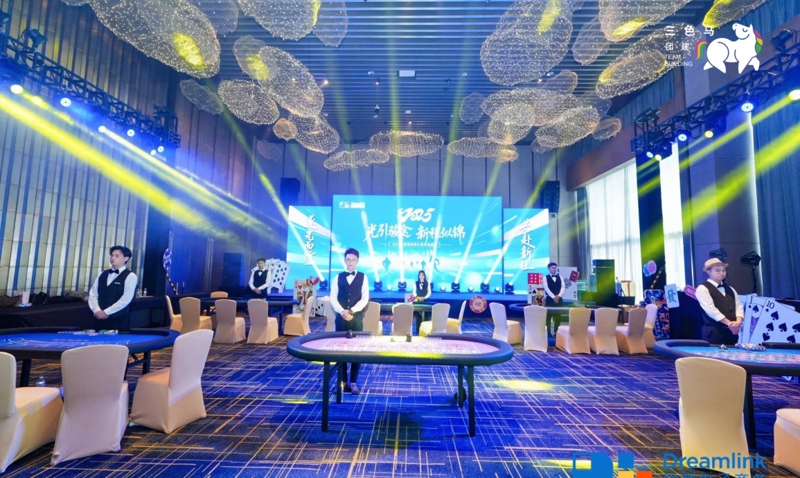 【活动布场】小马提前来到酒店,布置好签到合影墙,装扮博彩嘉年华区域、户外PK区域,灯光和装饰将年会的氛围感拉满~