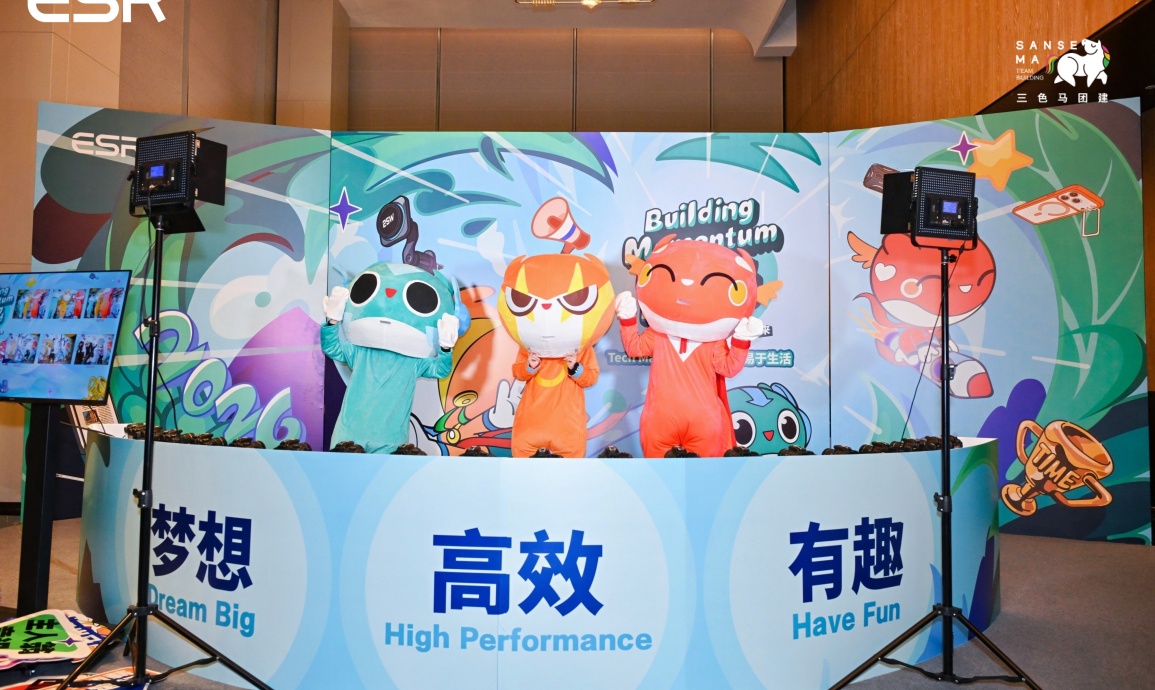 【年会入场】创意签到仪式超吸睛!摇铃铛取卡片,写下姓名粘贴至指定区域,定格创意造型互动,即时下载电子照片;领取冰箱贴材料包 DIY 专属作品,各队将打造的雪王摆放在展示区,荧光棒装饰点亮氛围,团建创意照片循环播放,仪式感拉满~