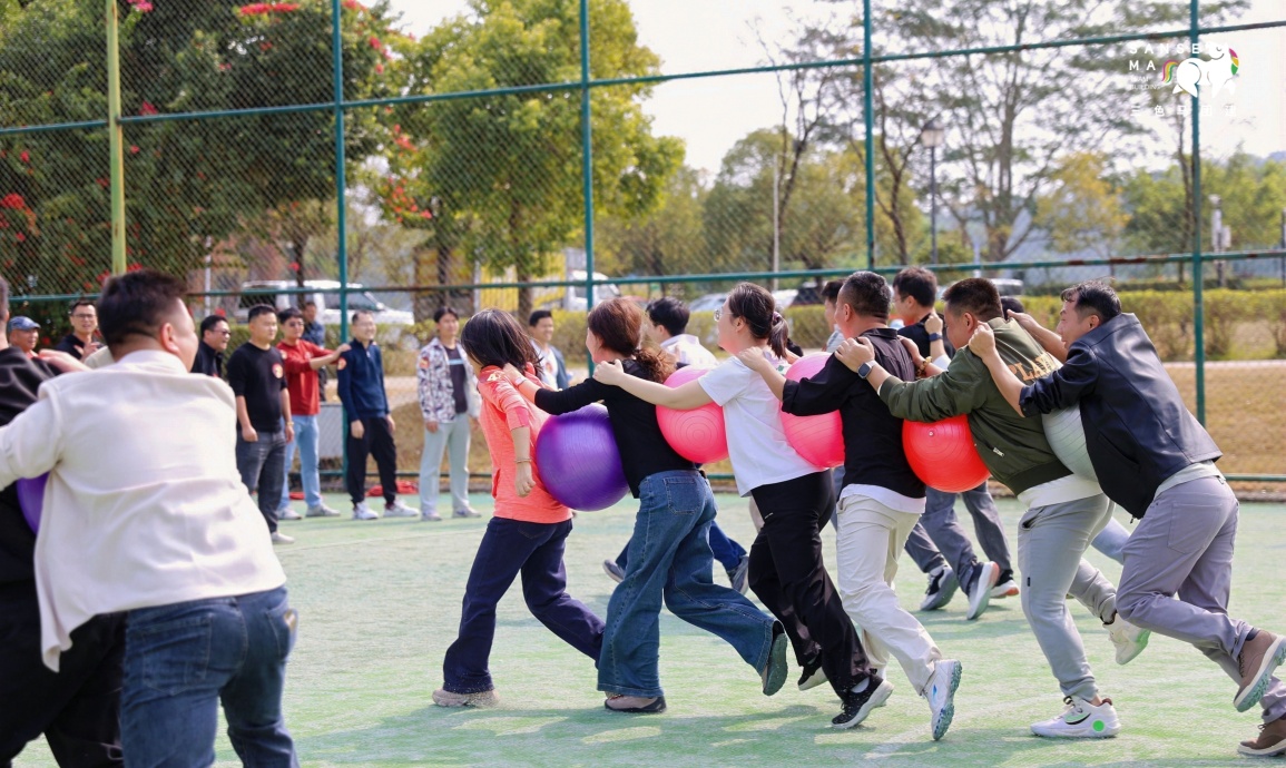 【趣味主题团建】教练带队解锁破冰与PK游戏,桃花朵朵开、长龙夹球等趣味玩法轮番上阵,百人战鼓、动力圈凝聚团队力量,家属可自由参与或茶歇休息,氛围感拉满~
