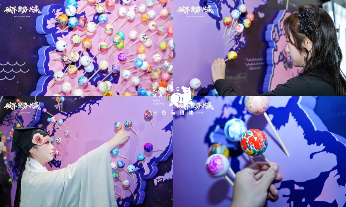 【趣味涂鸦签到】240名伙伴齐聚现场,亲手DIY涂鸦泡沫小球,将专属创意小球插在地图背景墙,以独特方式定格身影,解锁仪式感满满的入场时刻~