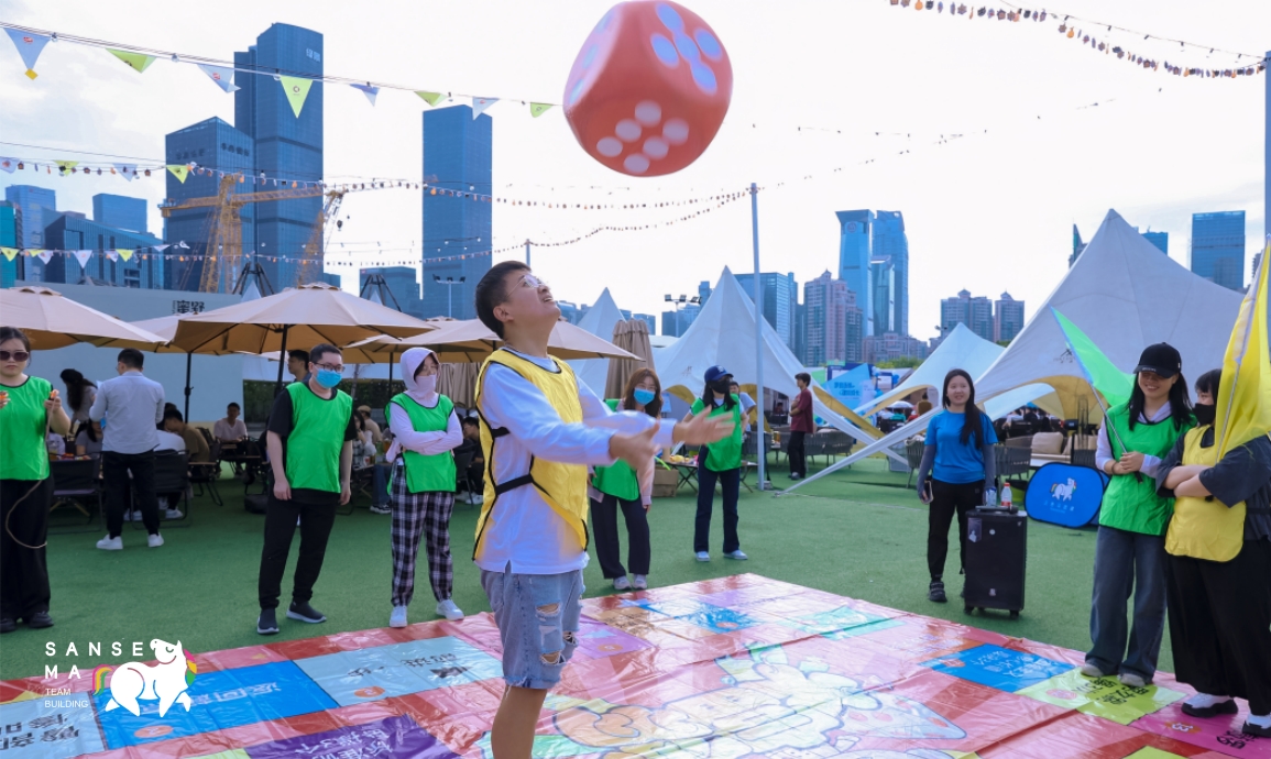 【主题团建】在教练的带领下进行真人大富翁主题团建活动