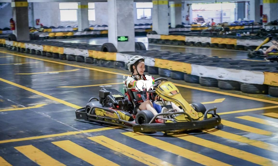 第一站先来到室内卡丁车基地,格格化身赛车手,感受漂移的刺激!