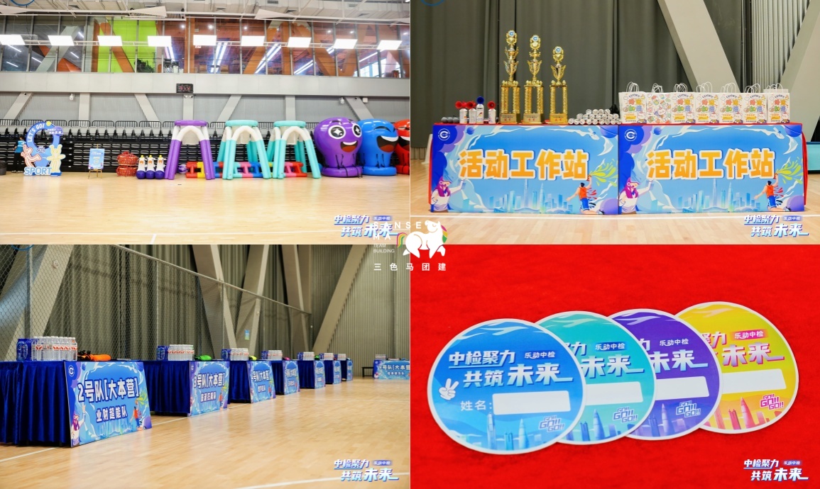 【前期布置准备】工作人员提前抵达活动场地,精心布置团建所需各类物料与装置,搭建队伍大本营、打卡相框、各赛区赛道,调试启动仪式道具,确保活动各项流程顺利开展。