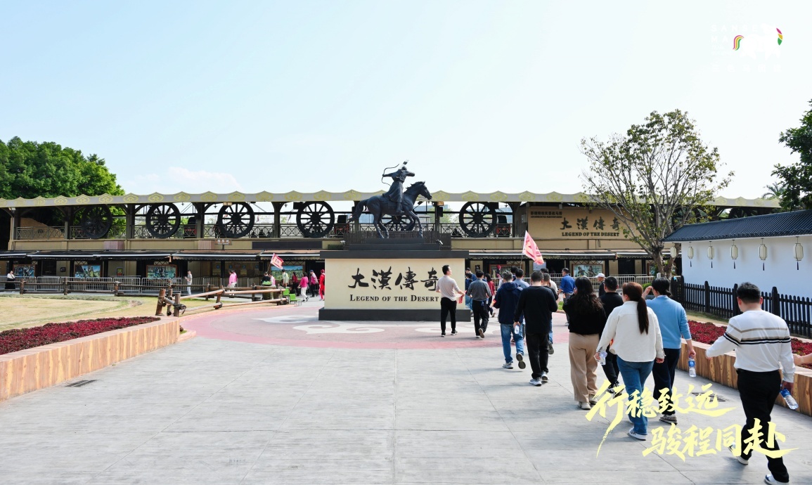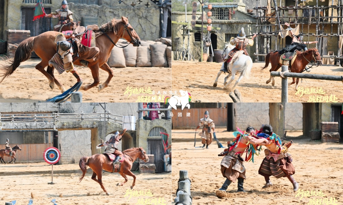 【团建创意主题活动】13:50-17:10,全员完成大合照、热身破冰、分队选队长,观看大漠传奇表演后,在队长带领下开展游园主题活动,完成游戏、打卡及共创任务,最终合影定格。