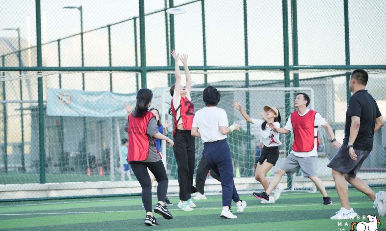 利用下班后的 2 小时,大家在开阔的天台足球场尽情奔跑、挥洒汗水,在轻松欢乐的飞盘互动中卸下疲惫、增进交流,既体验了当下流行的健康运动方式,也有效增强了团队默契与凝聚力。