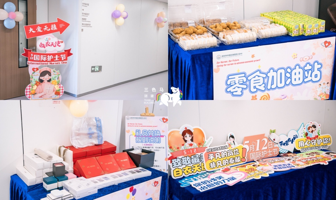 【场景布置】三色马的工作人员提前到达现场,布置好护士节氛围感满满的游园会场景~漂亮的拍照打卡点,创意的气球布置~