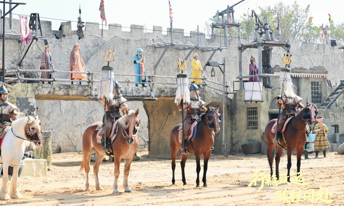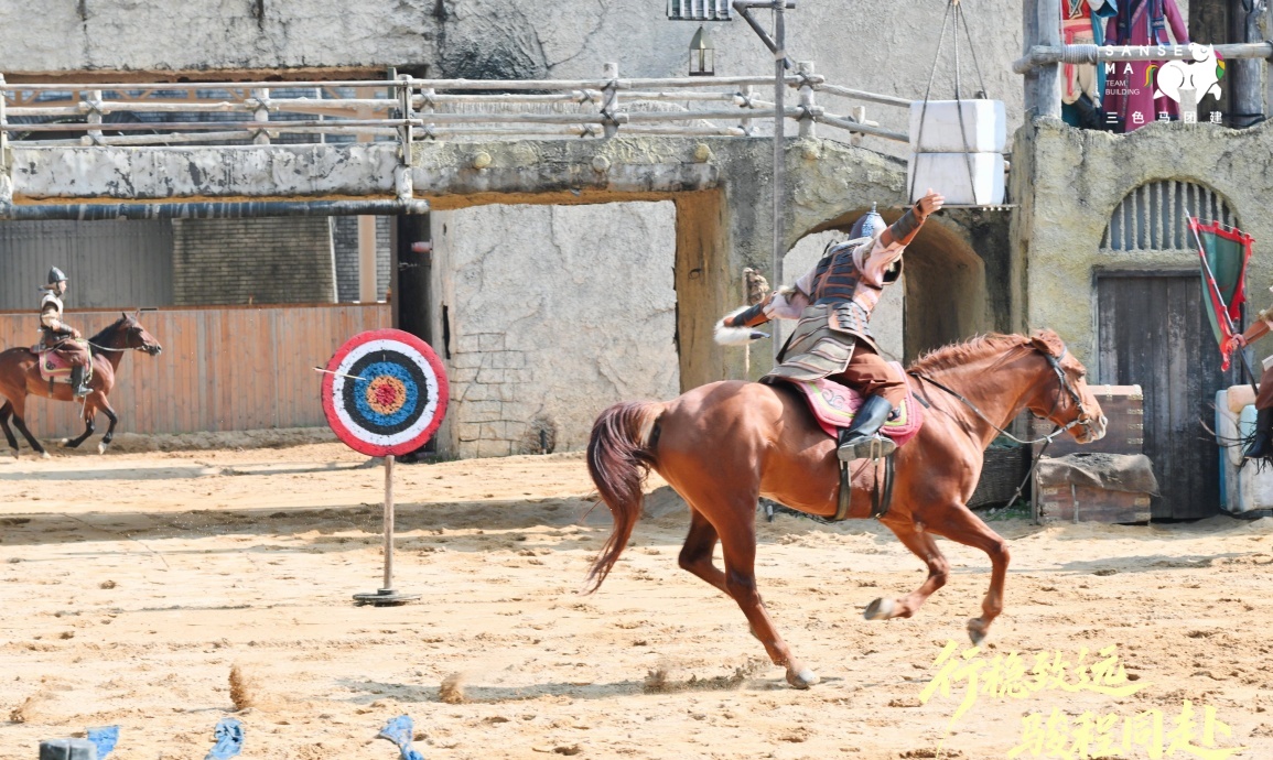 【大漠传奇表演观看】随后前往观看大漠传奇表演,表演时长半小时,现场呈现赛马、射箭、马上比武等精彩内容,与现场NPC展开趣味互动,沉浸式感受大漠风情与热血氛围。