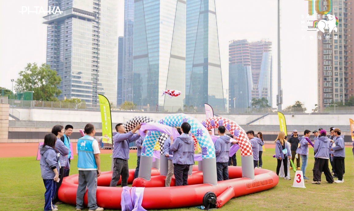 【项目PK·创新争锋】15名队员组队接力,快速拼接散落的充气方块,精准配合、争分夺秒,用时最短的队伍斩获高分,尽显团队协作力!