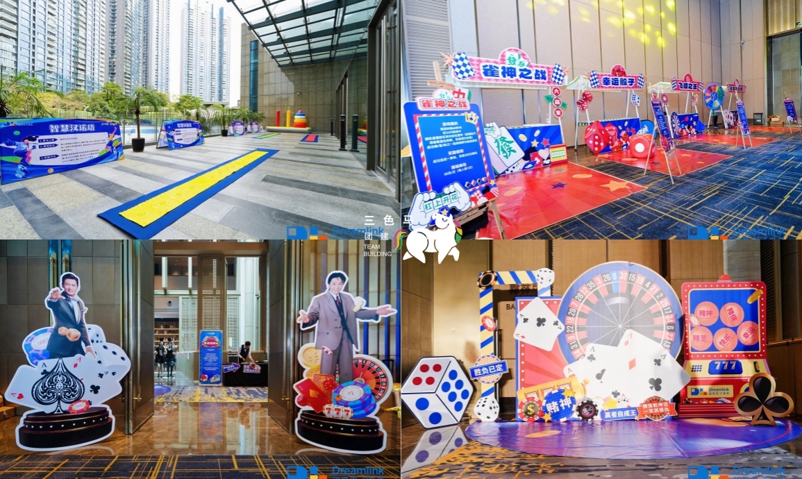 【活动布场】小马提前来到酒店,布置好签到合影墙,装扮博彩嘉年华区域、户外PK区域,灯光和装饰将年会的氛围感拉满~
