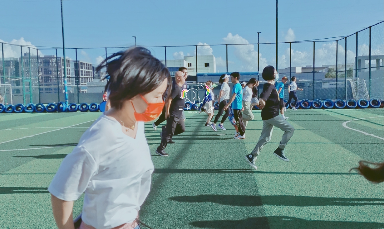 到达球场,大家涂好防晒霜/补充好水分,就先热身起来~