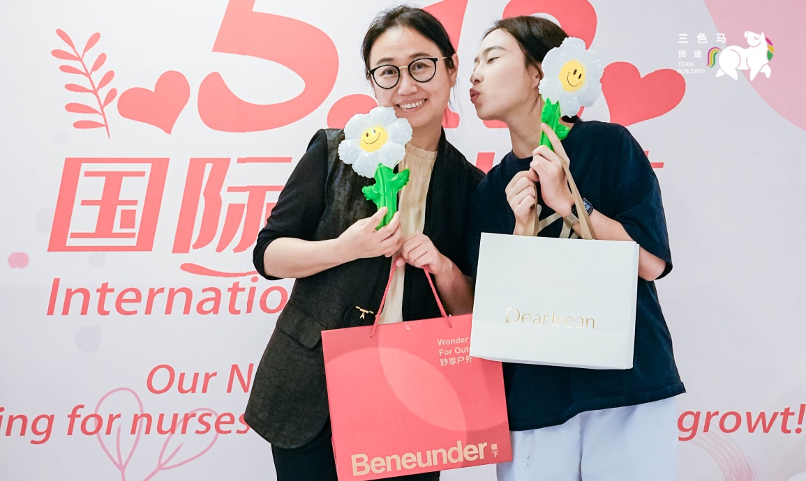 【场景布置】三色马的工作人员提前到达现场,布置好护士节氛围感满满的游园会场景~漂亮的拍照打卡点,创意的气球布置~