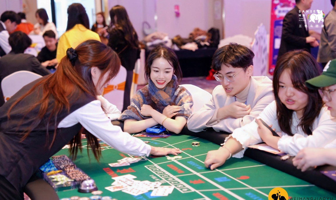 【拉斯维加斯 + 嘉年华体验】赛场火力全开!猜大小、百乐门、德州扑克、龙虎斗、美国转盘等经典赌场项目轮番上阵,飞镖、叠叠乐、幸运掷骰子、雀神争霸趣味加码,大家凭借技巧与运气赚取筹码,现场欢呼声、喝彩声不断~